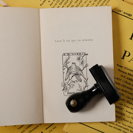 Pour inciter mon fils de 16 ans à ouvrir davantage de livres, je lui ai offert un entretien de personnalité philosophique avec Ex-Libris Paris pour créer ensemble son ex-libris sur mesure. Il a adoré, et s'en sert pour créer sa propre bibliothèque.