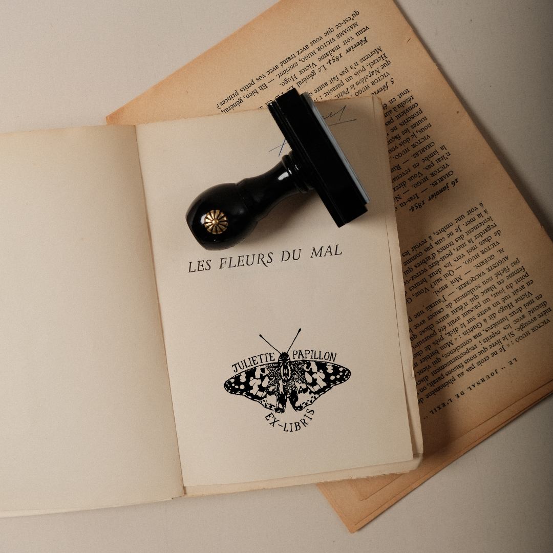 - Gravure artisanale du tampon sur manche en bois verni naturel ou noir