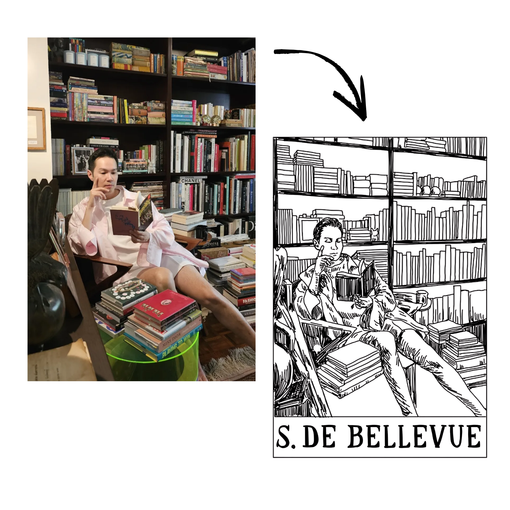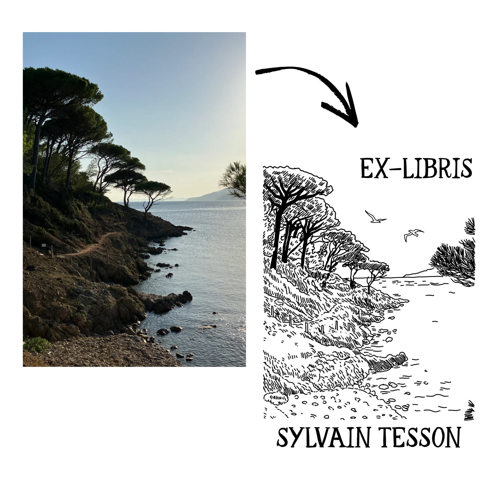 My colleagues and I were looking for an original gift for a friend who was leaving the company. The personalized bookplate was an obvious choice: a unique design that reflected his personality, to stamp his collection of art books.
