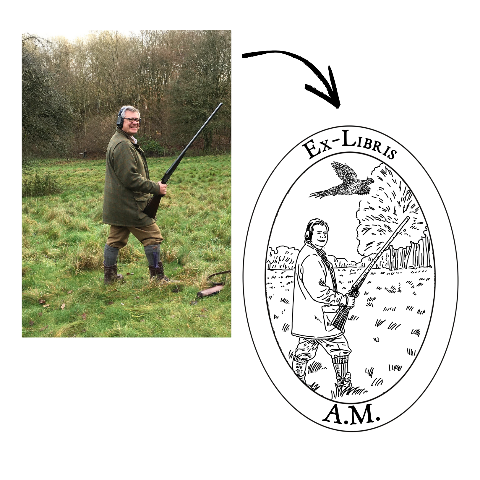 I gave my best friend a custom ex-libris stamp based on a photo of his dogs. The result was fantastic! The photo was redrawn to create a really cool stamp.