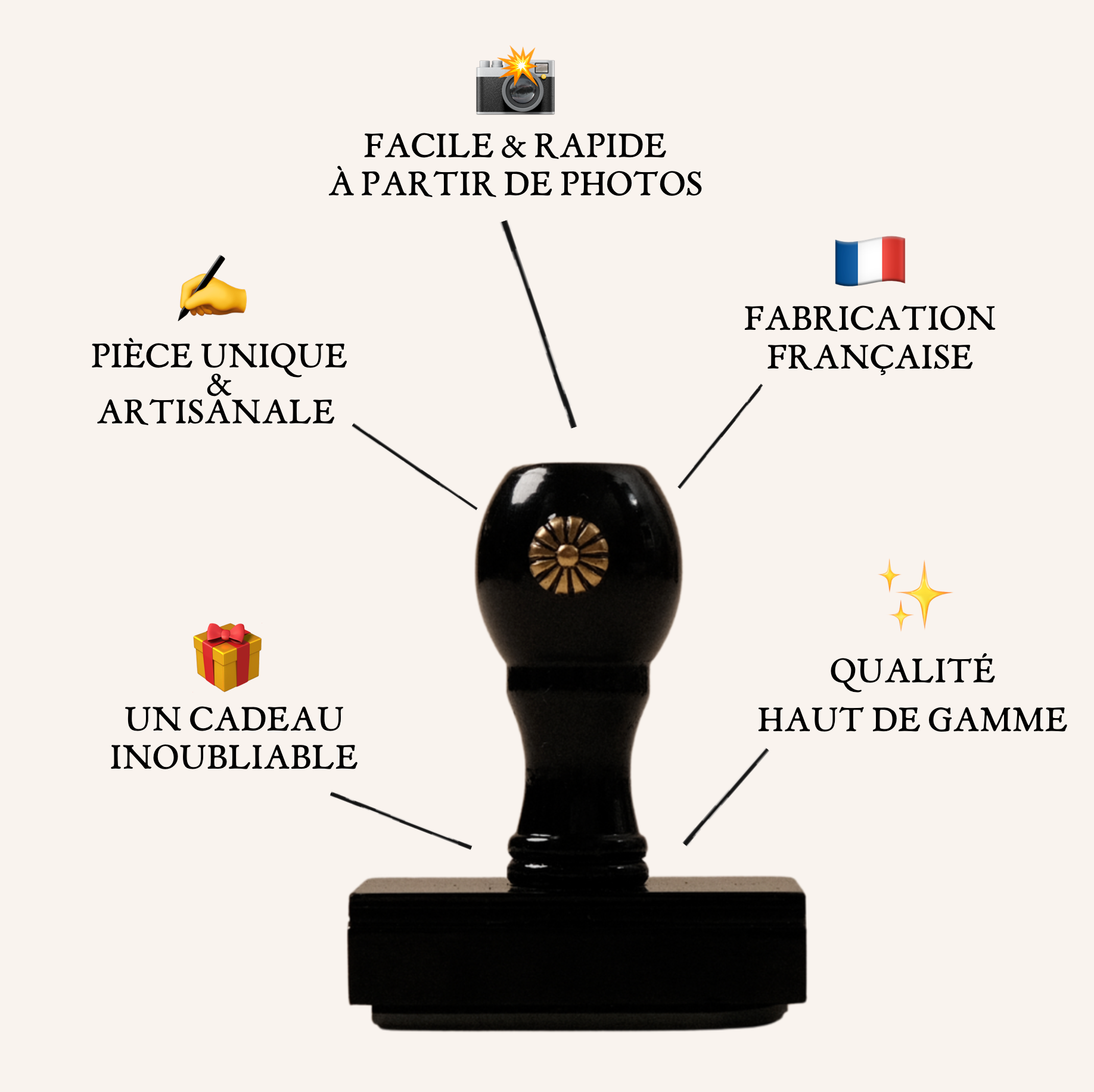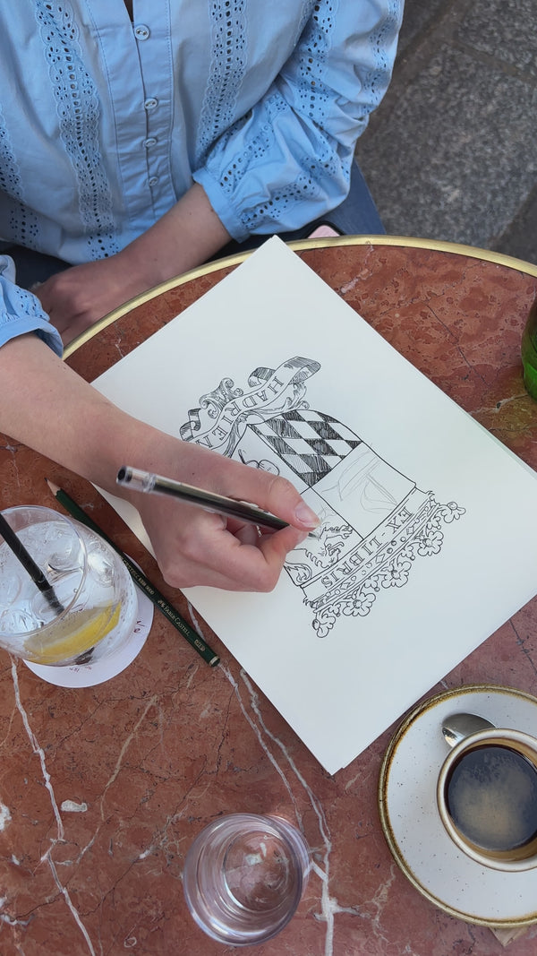 Blason, portrait, maison, partagez votre inspiration: nous la transformons en un tampon unique, dessiné et gravé pour vous.