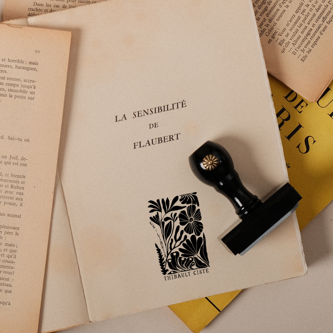 - Gravure artisanale du tampon sur manche en bois verni naturel ou noir