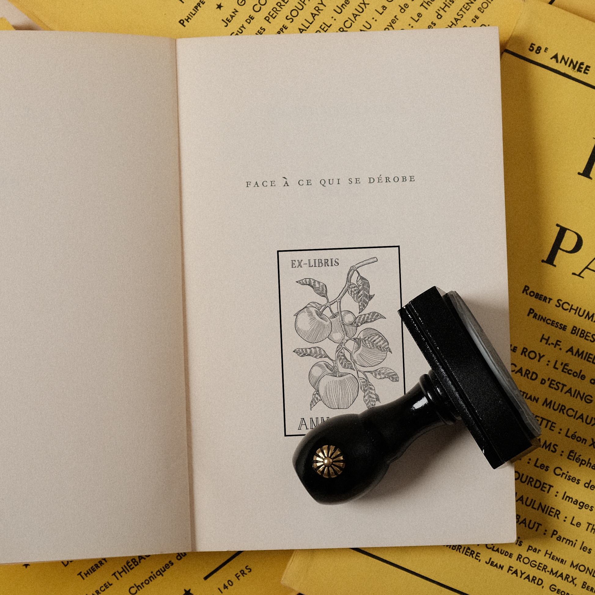 - Gravure artisanale du tampon sur manche en bois verni naturel ou noir